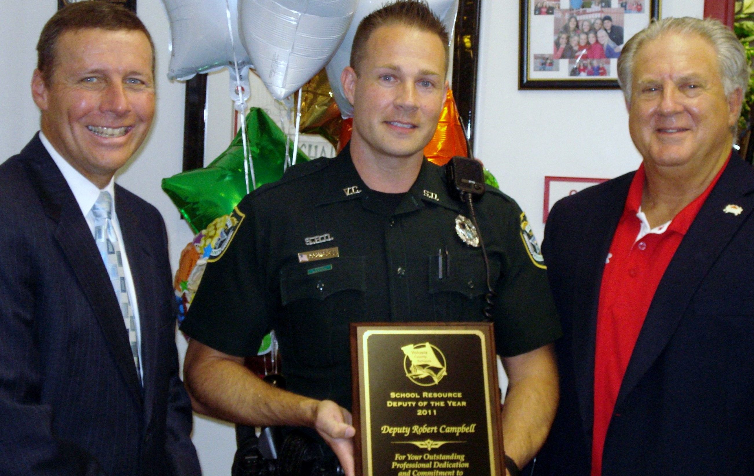 Picture from left to right in the photo attachment are: Gary Marks, Director of School Security; Deputy Robb Campbell; and Seabreeze High School Principal Bob Wallace.