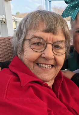 white, with brown eyes and salt and pepper hair, about 5 feet, 2 inches tall. She may be wearing glasses.